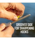 RANURAS DE AFILADO: esta caña de afilar incluye una ranura de afilado para anzuelos de pesca y está recubierta con múltiples capas de diamantes monocristalinos del tamaño de una micra.