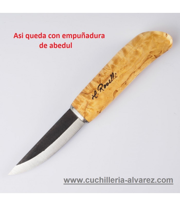 Hoja ROSELLI Nikkarinpuukon terä R110B en acero carbono con 6,2 cm de espiga y hoja de 8.5 cm.