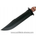 El KA-BAR 2217 Big Brother es literalmente el hermano mayor del famoso KA-BAR USMC. El cuchillo es grande y se siente muy fuerte. El mango está mejorado con un protector de cuchilla para asegurarse de que nunca terminará en el filo de una cuchilla de afeitar durante el uso pesado. La cuchilla está hecha de acero al carbono 1095. Este tipo de acero no es inoxidable. Afortunadamente, la cuchilla está mejorada con un recubrimiento negro para garantizar que el mantenimiento sea mucho más fácil. El mango está hecho de anillos de cuero apilados. Cómodo para tus manos, incluso cuando se está congelando. La principal diferencia con el USMC 1217, excepto por su tamaño, es que la columna vertebral de la cuchilla se mejora con estrías.