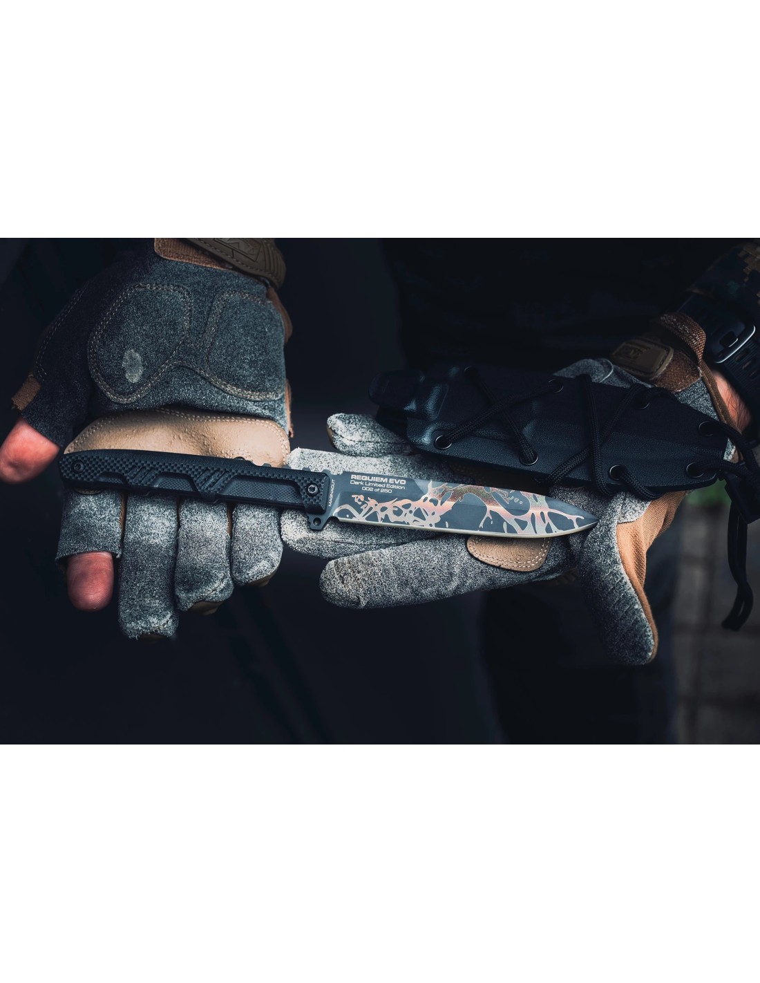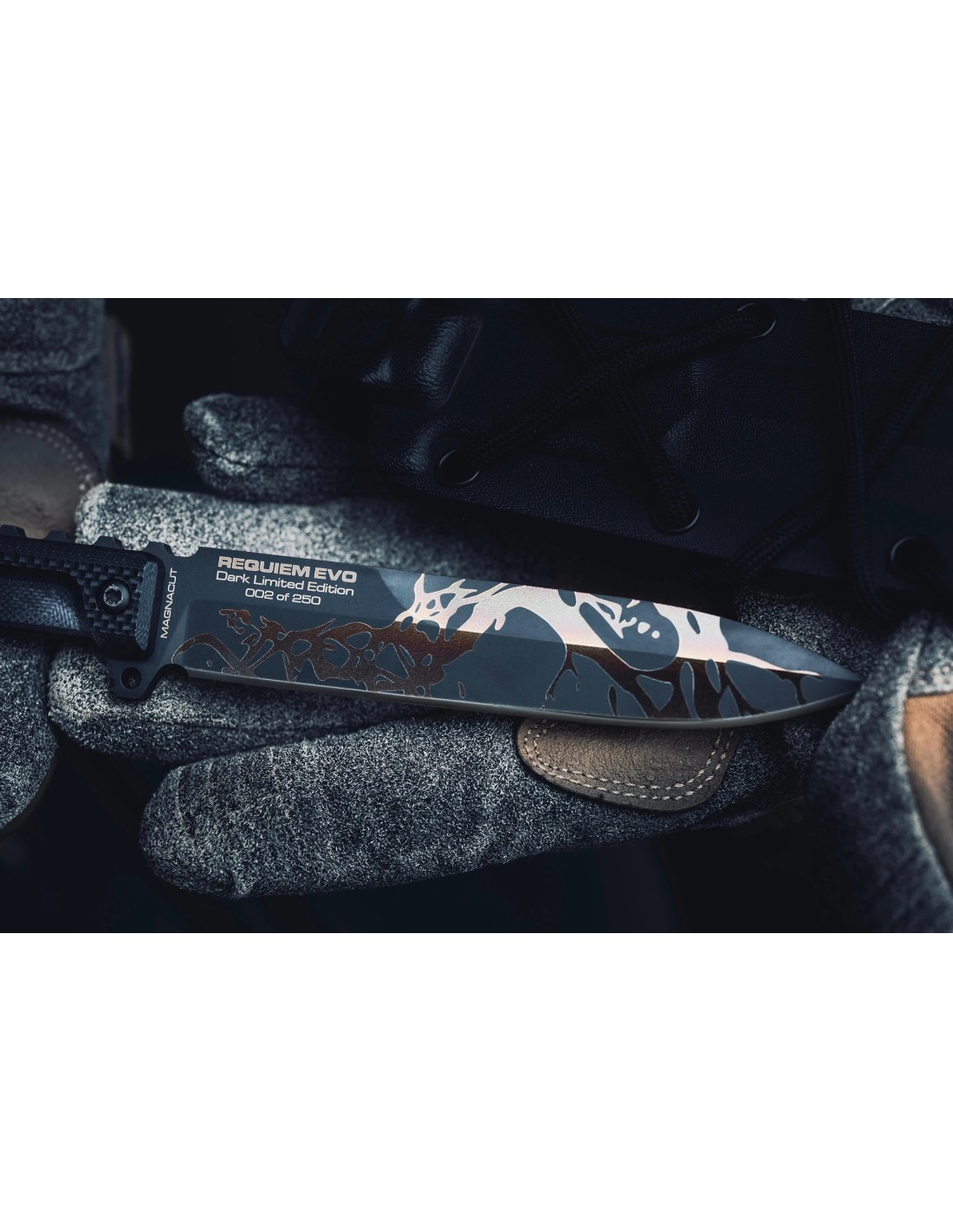 El REQUIEM EVO DARK es la versión de espiga completa del renombrado Requiem, mejorado en todos los aspectos: una estructura más robusta, un nuevo perfil de punta de lanza para una penetración superior y cortes limpios, y cachas de G10 negras con un diseño futurista.