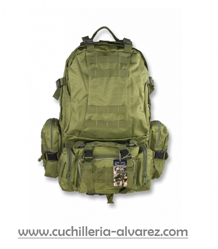 Mochila BARBARIC 34881-VE Verde 50L en nylon 600D con cierres de cremallera y color Mochila Verde.