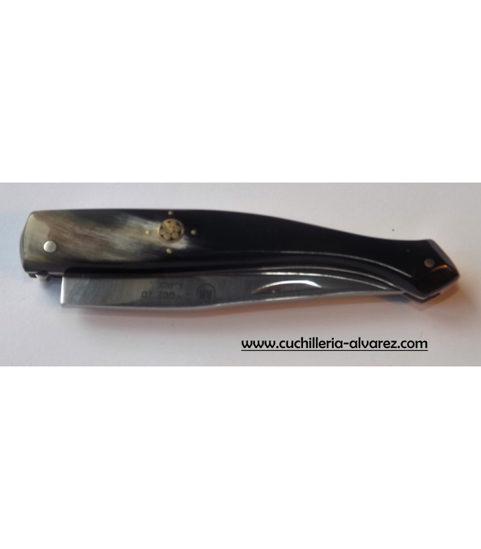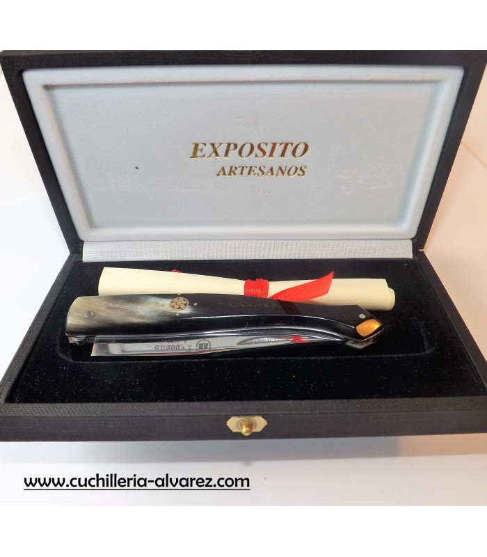 Navaja Exposito P/8000-CE con hoja de acero inoxidable SANDVIK 12C27 de 90 mm y empuñadura de cuerno de cebu.