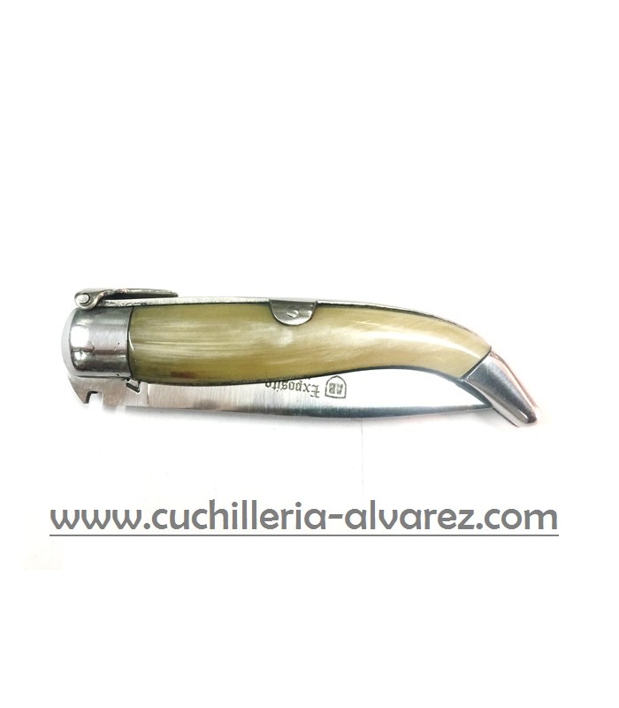 Navaja Exposito PA-0-AT con hoja de acero inoxidable SANDVIK 12C27 y empuñadura de asta de toro.
