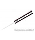Tiene un pasador de pulgar, orificio de la hoja u otra característica para facilitar el uso con una sola mano. Algunos modelos también se abren con una mano y cierran con una sola mano.