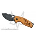 “El Suru fue diseñado como una mini carpeta compacta y trabajadora. Un cuchillo pequeño con una empuñadura completa cuando sea necesario. La robusta cuchilla de 4 mm y un rectificado plano casi completo lo convierten en un cortador fuerte pero eficiente. El Suru es todo el cuchillo que necesita en la mayoría de las situaciones cotidianas donde se requiere un filo. ¡Excelente ergonomía, transporte cómodo, acción súper voltereta y una cuchilla muy afilada harán de este uno de tus pequeños cuchillos favoritos para llevar! ”