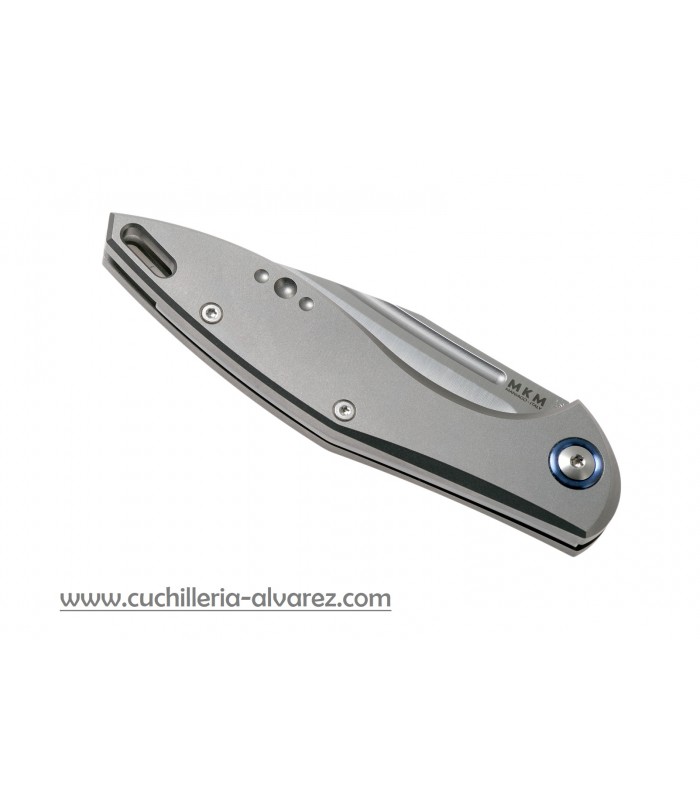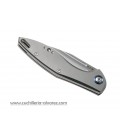Cuchillo plegable con hoja de acero BOHLER M390 con acabado satinado, apertura a dos manos con ranura para clavos, mecanismo de rotación de arandela de PTFE, sistema de junta deslizante sin bloqueo de la hoja.