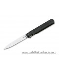 El notablemente delgado Boker Plus Kyoto es un cuchillo de caballero moderno y liviano con cachas de mango fresadas en tres dimensiones hechas de G10 texturizado . Sin parecer marcial, el diseño simétrico de línea recta recuerda ligeramente a un estilete tradicional. La hoja D2 , rectificada por un lado con un fino acabado fino, tiene un elegante rectificado hueco. Se abre mediante una aleta sobre cojinetes de bolas y se bloquea mediante un candado . El clip decorativo de titanio (tip-up / r) está fresado en titanio sólido y tiene un lavado a la piedra.terminar. Se integra perfectamente en el rebaje fresado de la escala del mango trasero y, por lo tanto, apenas aplica presión. Con estuche de nailon de alta calidad para almacenamiento.