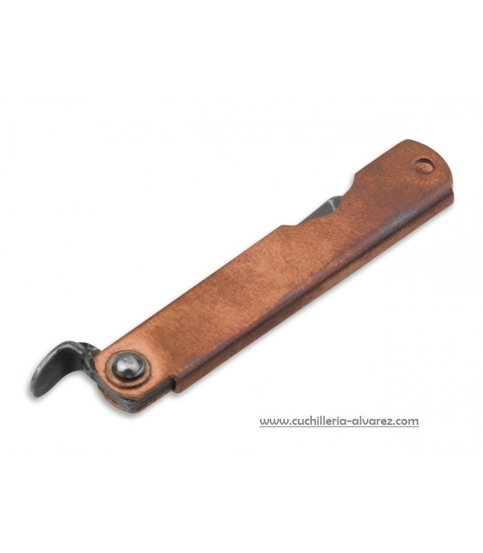 Navaja Higonokami Bonsai Irogane 01PE317, acero damasco y empuñadura de cobre.