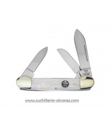 Navaja Hen & Rooster HR353LMOP Gunboat Canoe 3 Blade MOP en acero inoxidable con acabado espejo y empuñadura de nácar y virolas de alpaca.