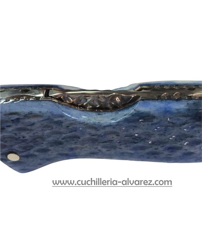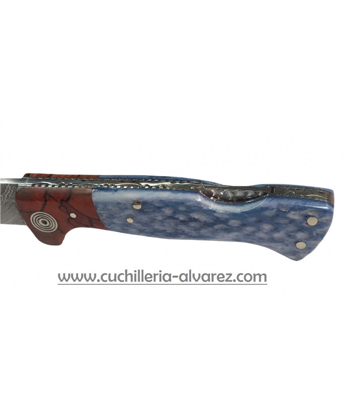 - Hueso de camello teñido de azul y madera de haya estabilizada
