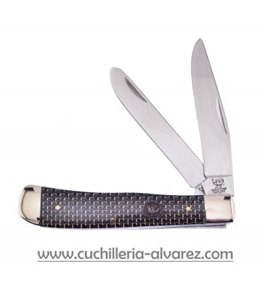 Navaja Hen & Rooster Trapper Resin HR312MR en acero inoxidable con acabado espejo y empuñadura de resina negra y dorada y virolas de alpaca.
