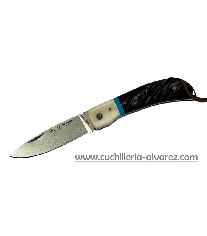 - Cuerno de bufalo de agua y virola de asta de ciervo y cintillo de malaquita