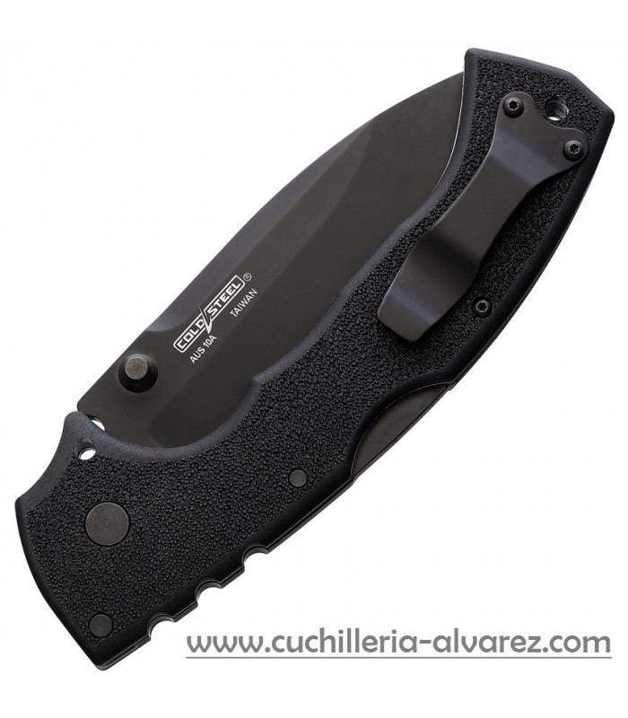 Navaja COLD STEEL 4-Max Scout Lockback CS62RQBKBK con acero AUS-10A con acabado negro, con empuñadura de Griv-Ex negro con seguro Lock back y clip reversible.