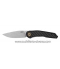 Escala frontal de fibra de carbono con parte trasera de titanio con acabado funcional; El bolsillo para los dedos del mango mantiene la presión fuera del bloqueo del marco, lo que ayuda a lograr una apertura uniforme y suave en todo momento.