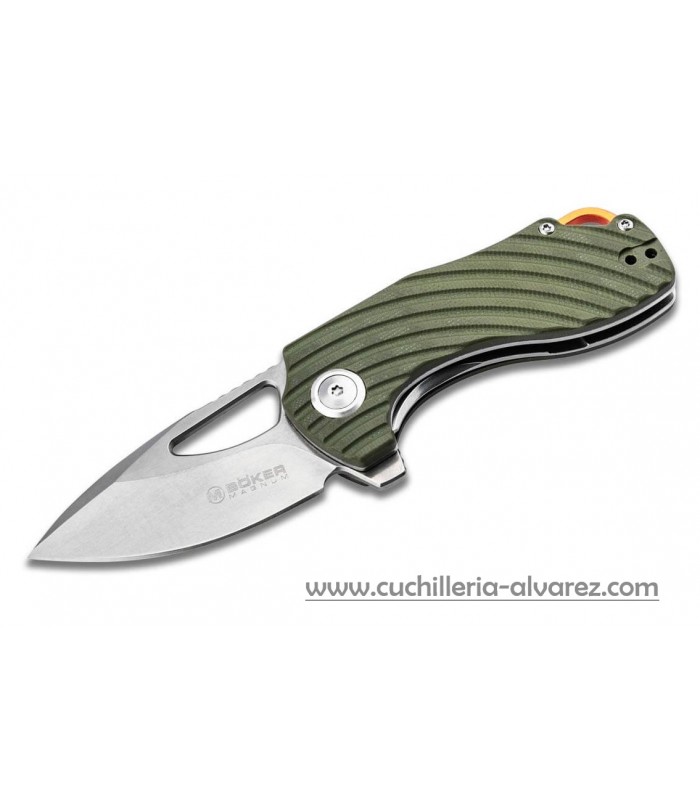 Crecido, definido, dinámico. Al igual que el renacuajo del mismo nombre y la rana, la idea de la Magnum Tadpole se convirtió en una navaja de bolsillo versátil para todas las tareas de corte cotidianas imaginables. La potente hoja de punta de lanza 440C con ricasso , jimpings y un discreto acabado lavado a la piedra muestra sus puntos fuertes, especialmente en las excursiones en tierra EDC. Sólo el movimiento fluido de la pala con rodamientos de bolas y las cachas del mango G10 de color verde rana con una impresionante textura ondulada antideslizante dan testimonio del origen acuático del Tadepole. Como alternativa a la aleta, el cuchillo se puede abrir a través del gran orificio para el pulgar, mientras que el bloqueo del forro asegura la hoja de forma fiable. El espaciador naranja con ojal para cordón integrado crea un exitoso contraste complementario con el asa y es el complemento perfecto para el clip de transporte profundo convertible (¡Metamorphosis can be magnum!).