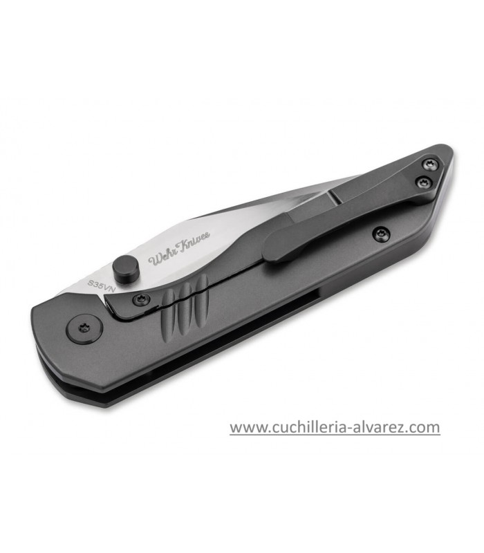 Razón suficiente para equipar el Böker Plus Max con una hoja de punta de caída ágil y con acabado satinado hecha de pulvimetalurgia CPM-S-35VN , que, con palancas antideslizantes en el apoyo para el pulgar, amordaza incluso los trabajos de corte más difíciles. Gracias al pasador para el pulgar situado en ambos lados para abrir la carpeta EDC, el Böker Plus Max obedece cada palabra y muestra instintivamente los dientes ante cajas, embalajes o cuerdas. El mango de titanio TC4 gris oscuro, fresado de material macizo, se adapta bien a la mano y forma una unidad visual con el sólido marco de bloqueo para desbloquear la hoja. El clip