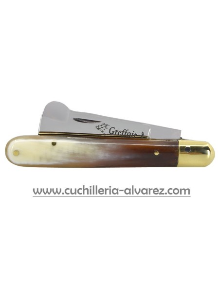 Cuchillo de injerto recto - Hoja de 50 mm - Mango de cuerno prensado ligero - Refuerzo de latón