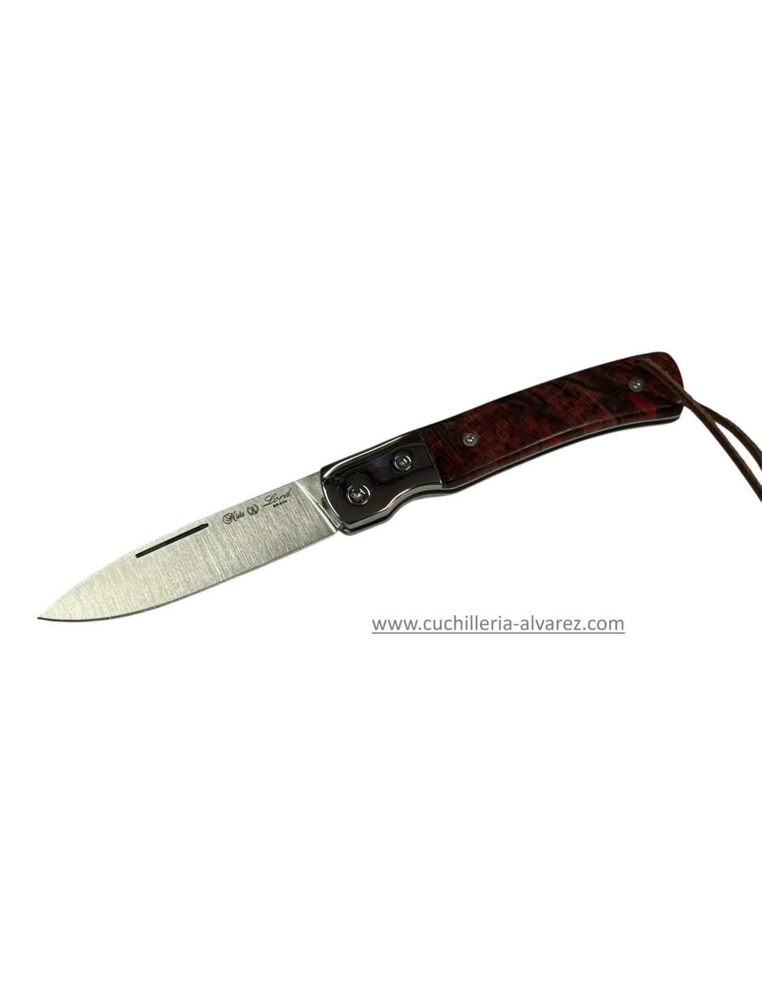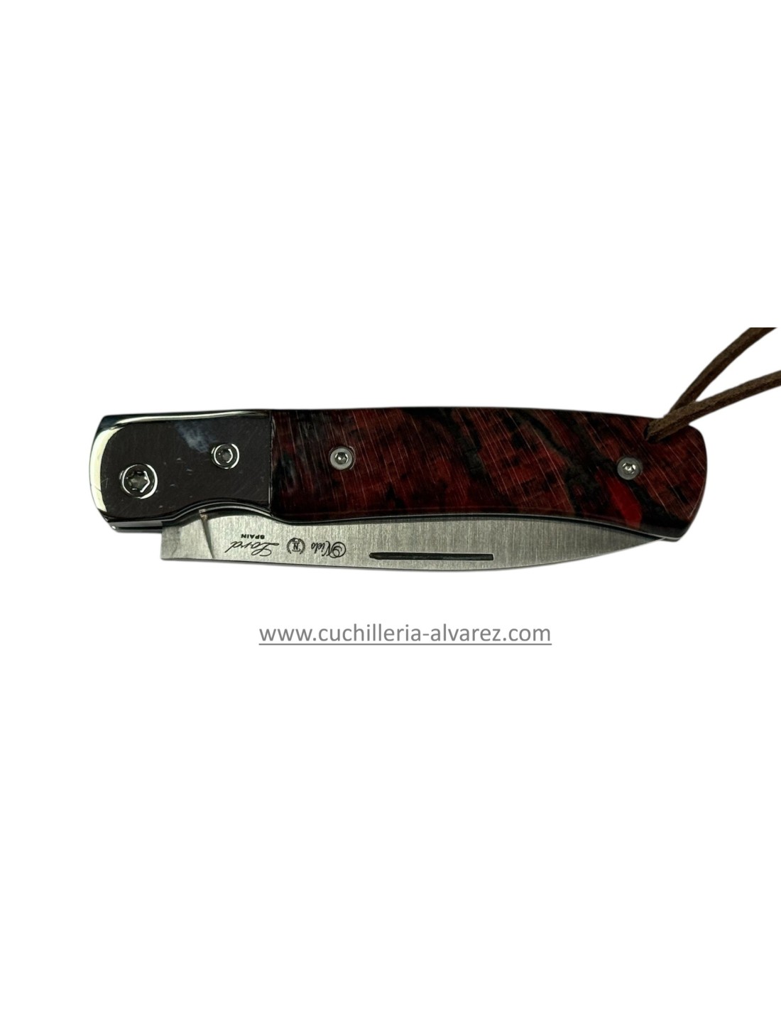 Navaja Nieto LORD Madera de haya estabilizada roja 370-V-HAYA con hoja de acero Bohler M390 de 77 mm y empuñadura de madera de haya estabilizada roja y virola de acero inoxidable.