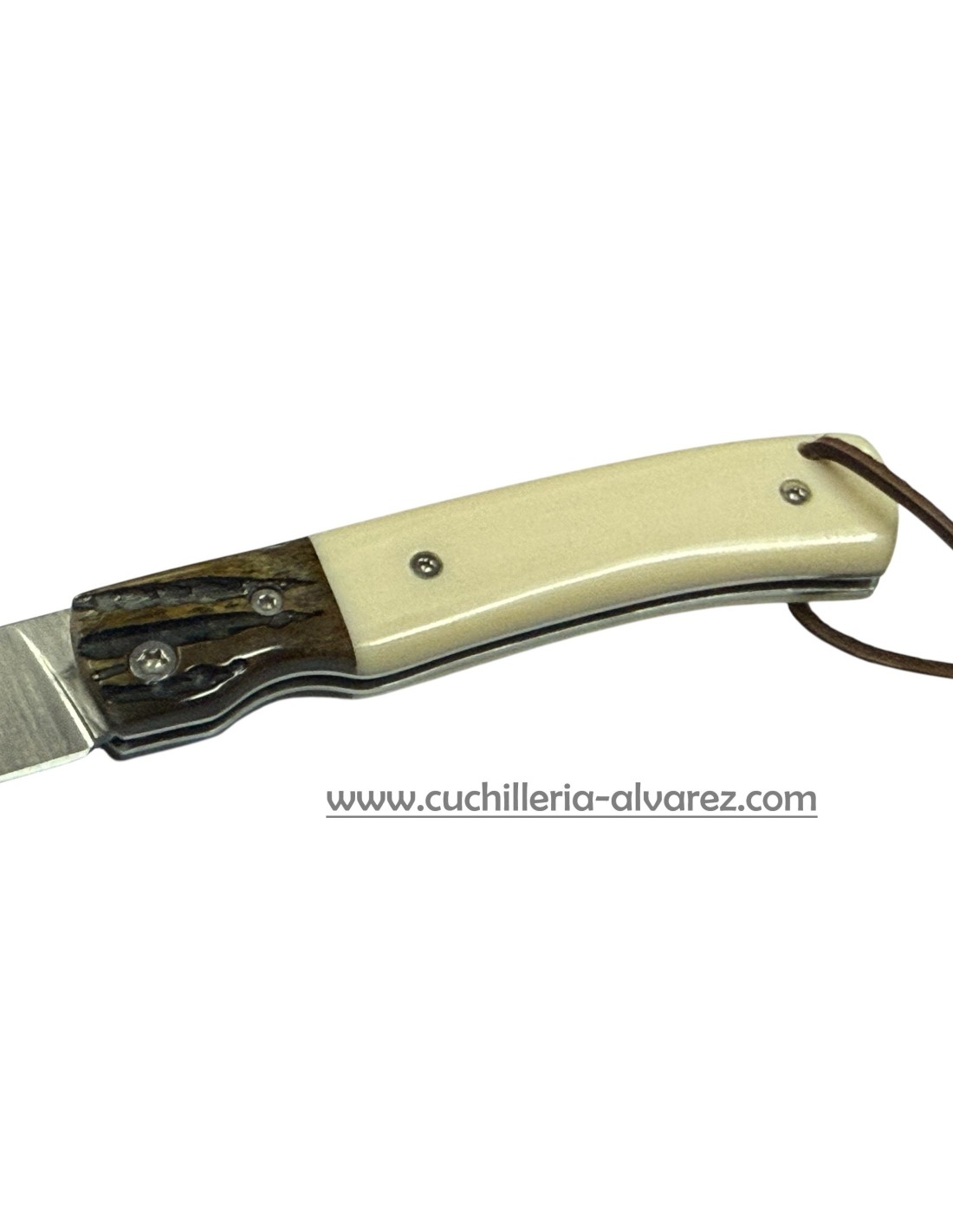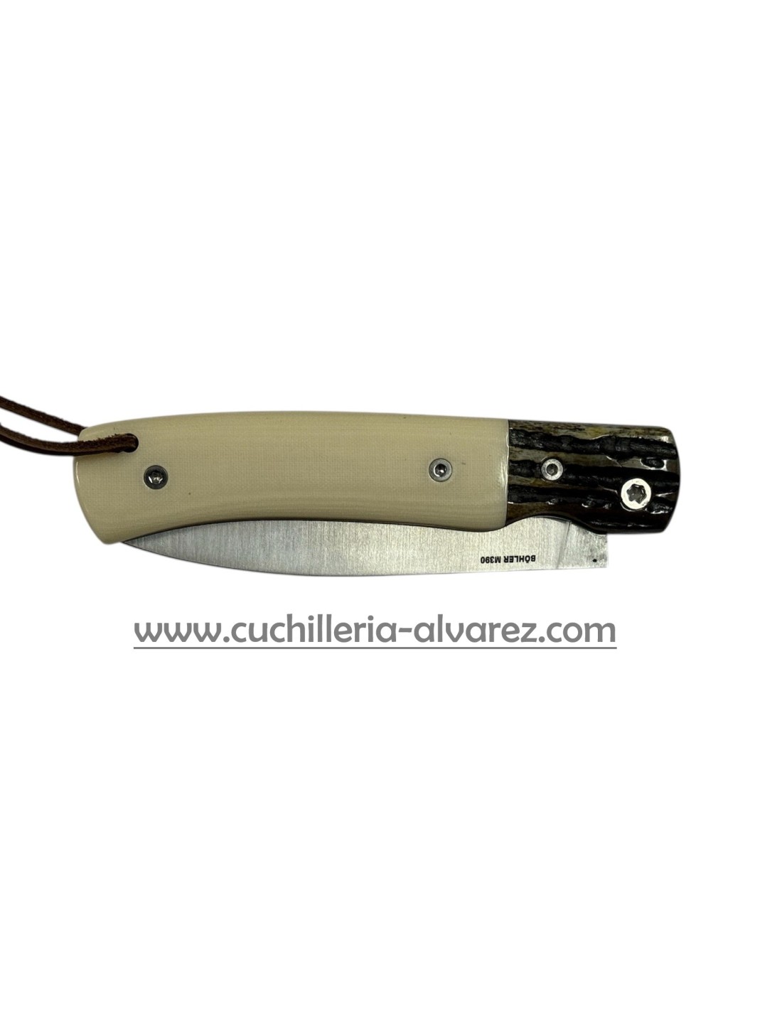 Navaja Nieto LORD Hueso 370-Hueso con hoja de acero Bohler M390 de 77 mm y empuñadura de miccarta blan y virola de huesto teñido.