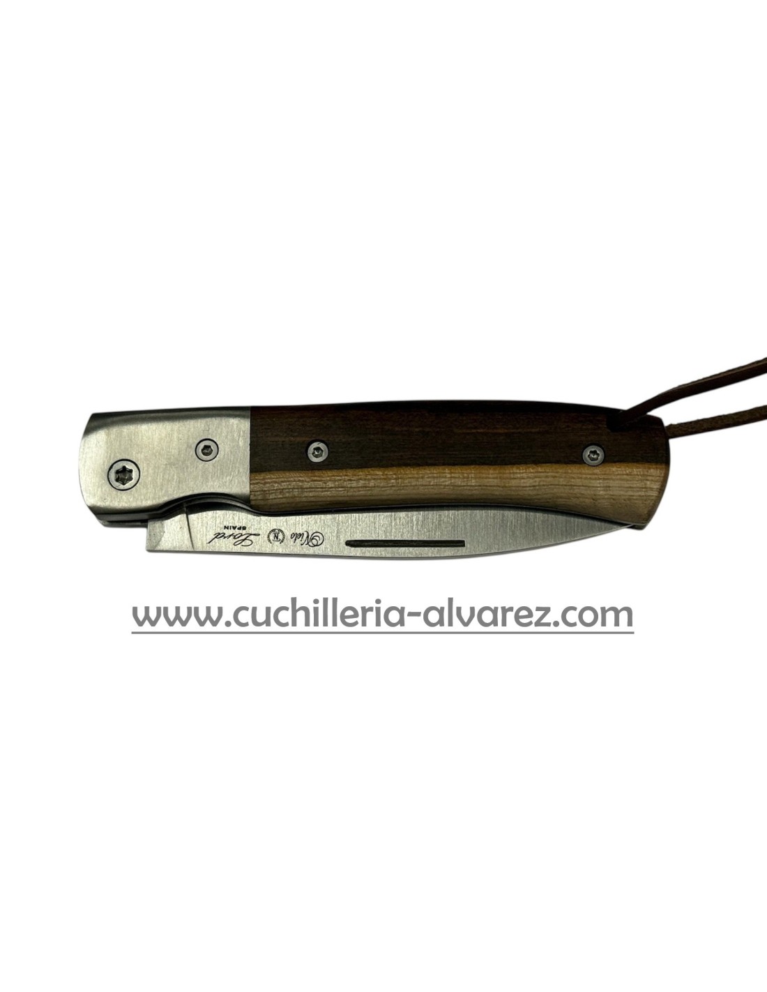 Navaja Nieto LORD Pistacho 370-V-PI con hoja de acero Bohler M390 de 77 mm y empuñadura de madera de pistacho y virola de acero inoxidable.