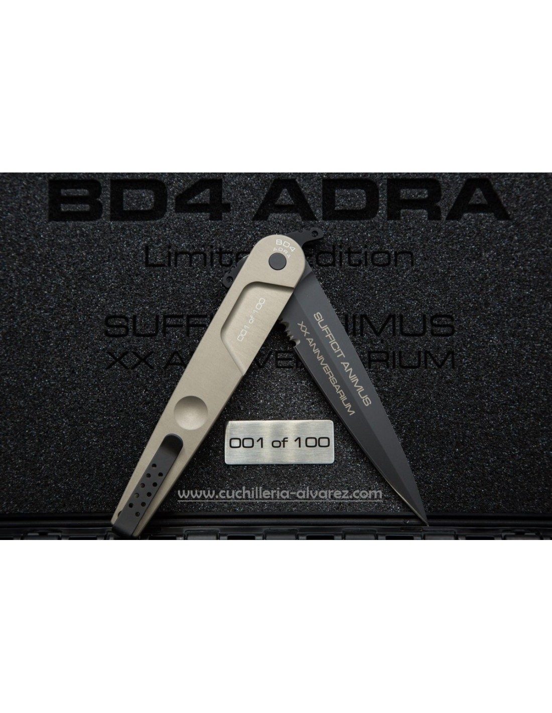 Para celebrar el 20.º aniversario de la fundación de la unidad, Extrema Ratio ha creado una edición especial del histórico modelo BD4 con un nuevo acabado, tanto en versión de doble filo (BD4 ADRA CONTRACTOR) como de un solo filo (BD4 ADRA). El mango está fabricado con dos cachas de aluminio anodizado anticorodal en el nuevo color Tactical Mud. La hoja es de acero Böhler N690 con una dureza de 58 HRC, con el lema del departamento grabado y pavonado MIL-C-13924.